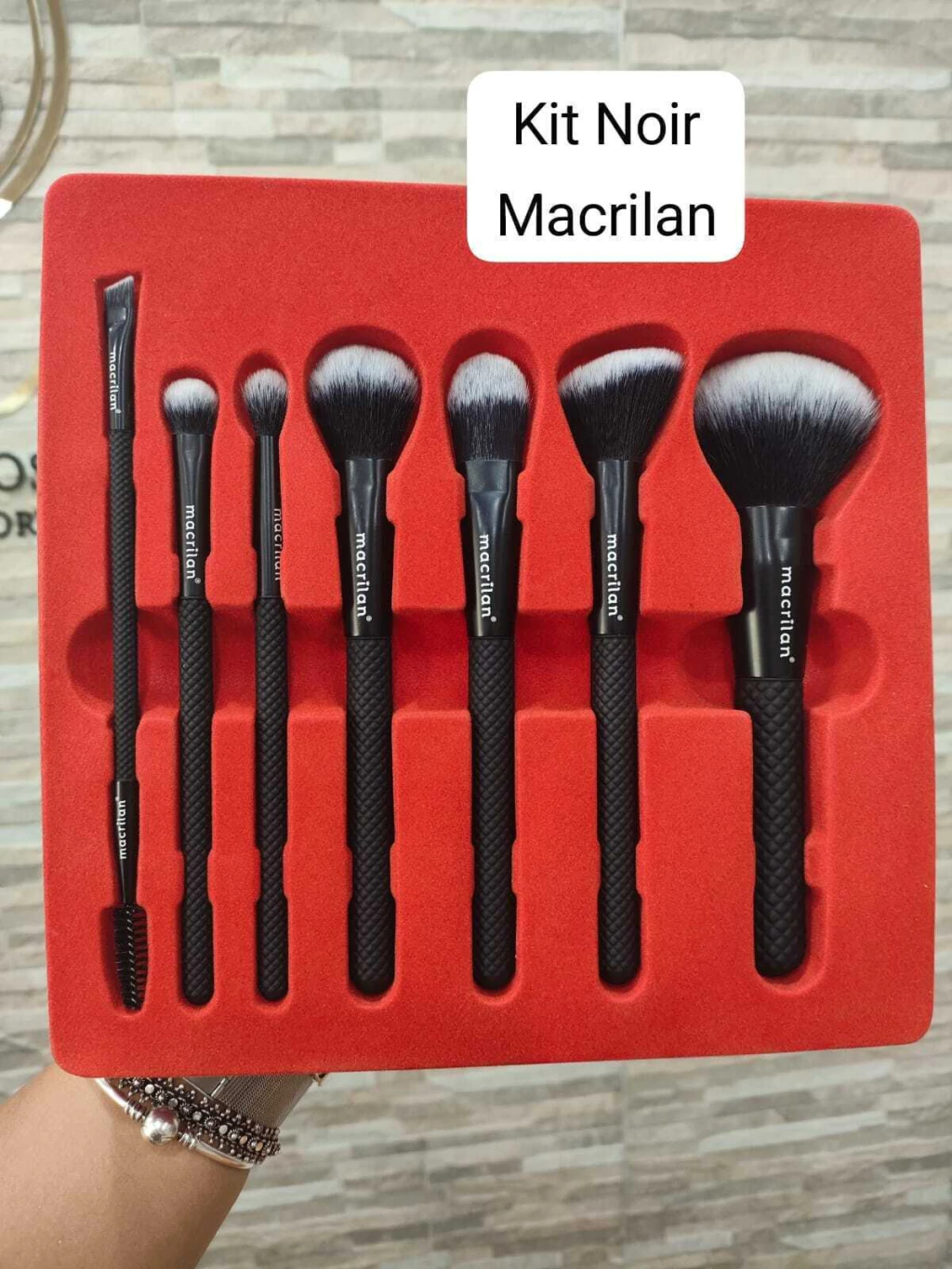 Kit Noir ED009 da Macrilan, feito com 7 pincéis profissionais para aplicação completa da maquiagem, tanto com produtos líquidos ou cremosos, como produtos em pó. Pincéis com cerdas super macias e em formatos especiais para um acabamento suave e impecável.